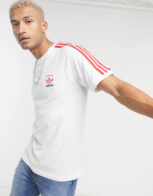 Adidas Originals Retro 3 Stripe T Shirt White Red California Tee