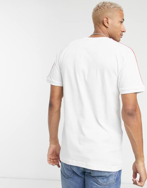 Adidas Originals Clothing 3 Stripe White Red T Shirt Mens From