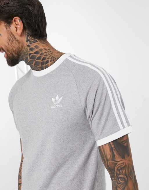 Adidas Originals 3 Stripe T Shirt In Grey Asos