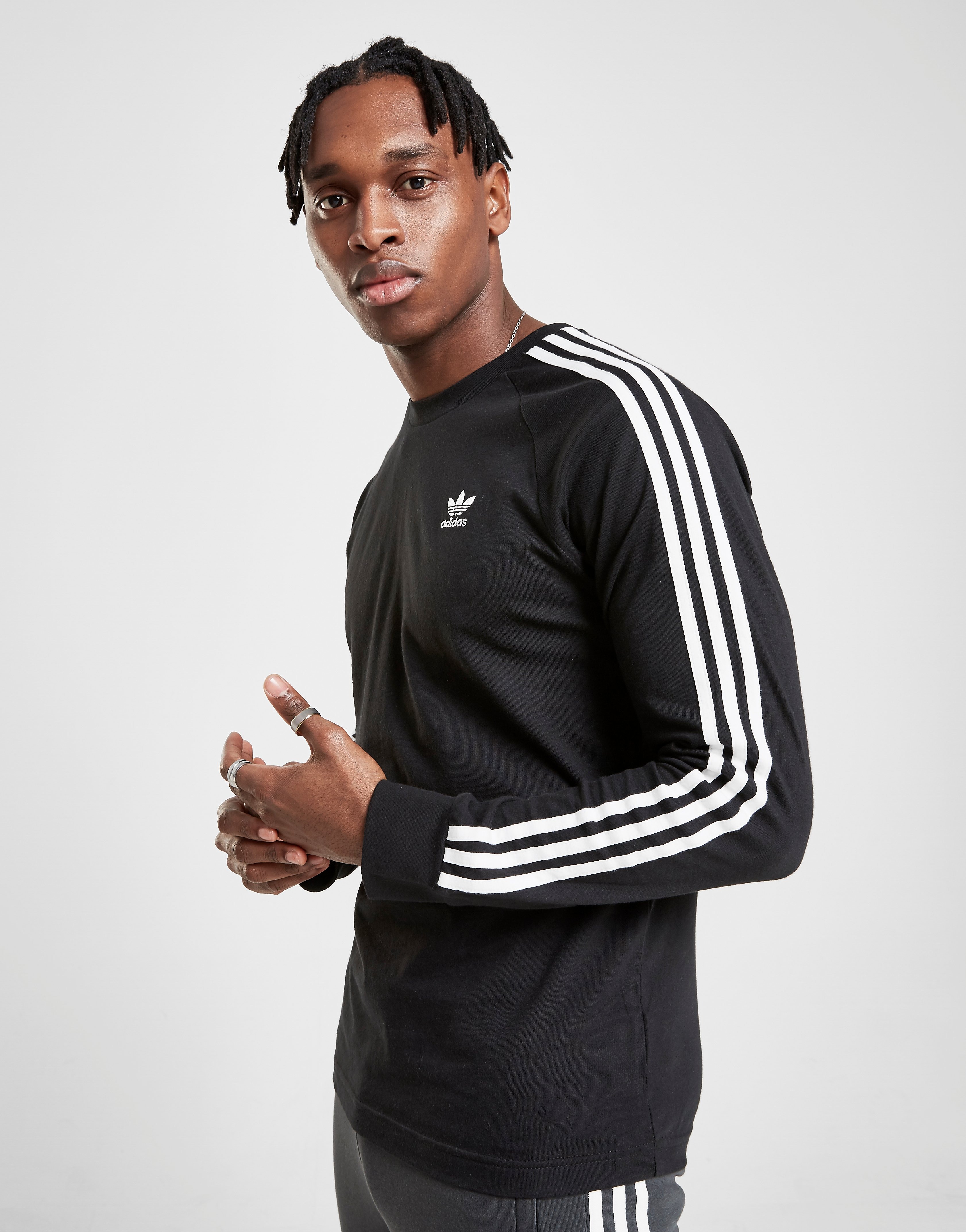 Buy Black Adidas Originals 3 Stripes Long Sleeve California T Shirt