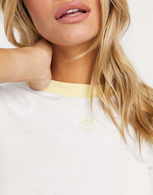 Adidas Originals Cropped Trefoil T Shirt In White And Yellow Asos