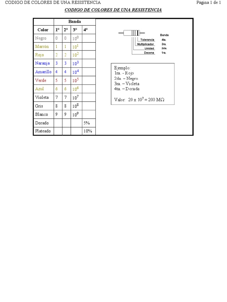 Negro 1 marrón 2 rojo 3 naranja 4. De 1 a 3 digitos son resistencias de 5 de tolerancia 1 o 2 digitos representa su valor 47 es 47w cuando tienen una letra r al principio r22 es 022w una letra r intercalada 4r7 es 47w y las de 3 digitos similar a los colores los 2 primeros digitos son numeros y el tercero. Rojo violeta naranja dorado marrón negro gris negro marrón rojo marrón verde plateado marrón 3. 681 ω 10 kω 4 8 ω 1 78 mω 1 kω 2.