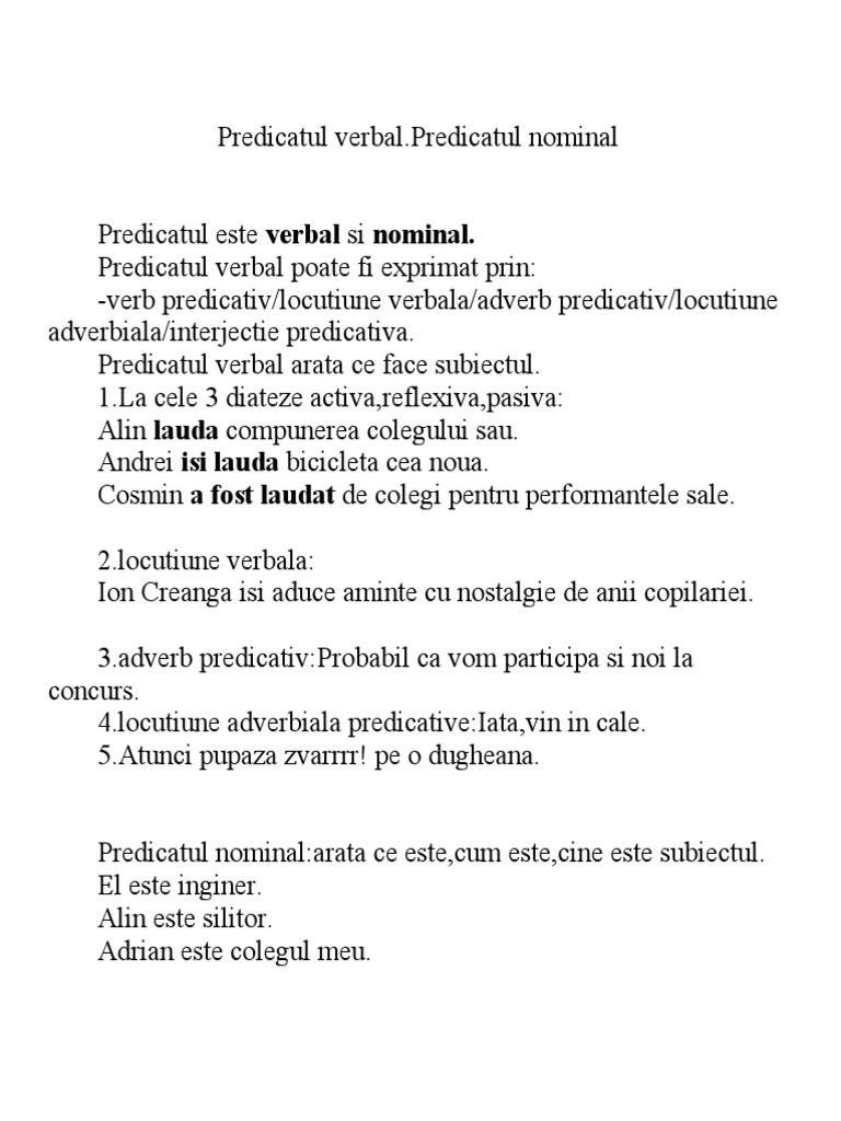 Examenultau ti a pregatit o noua lectie online la romana la care poti reveni de oricate ori ai nevoie. Este exprimat printr un verb cu înțeles de sine stătător verb predicativ la un mod personal sau printr o locuțiune verbală. Predicatul este partea de propoziţie care răspunde la întrebările. Lectia de astazi este.