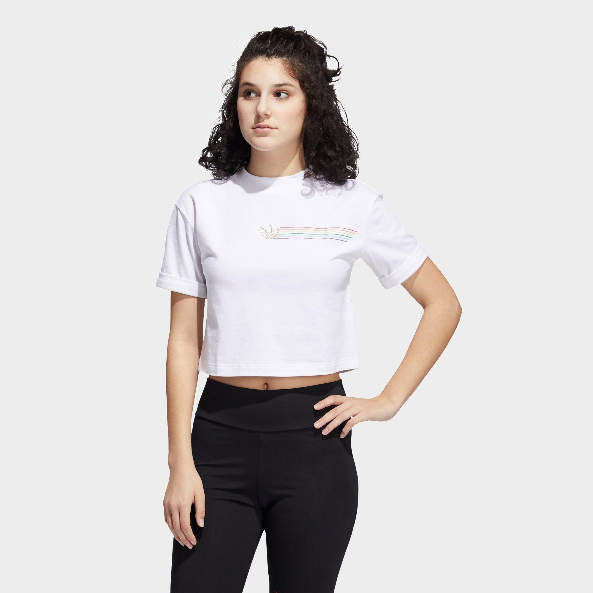Women S Adidas Originals Pride Linear Crop T Shirt Finish Line