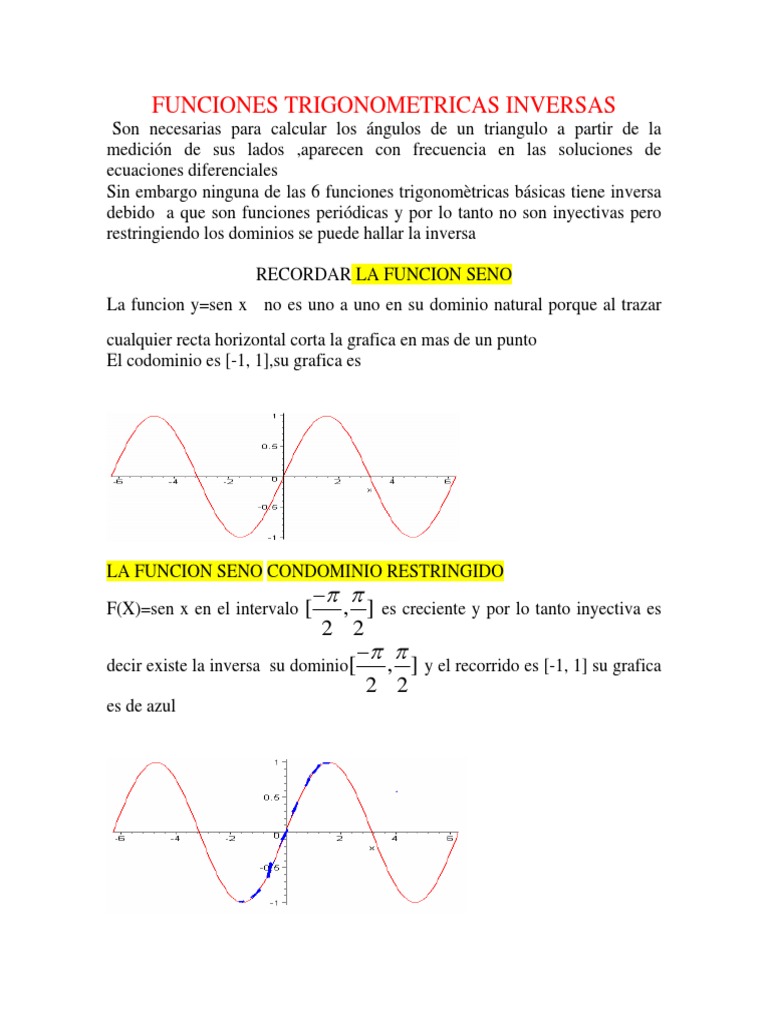Y arctg x x tg y. El arcotangente es la función inversa de la tangente. Como ves el sen x no debe tomar el valor 0.