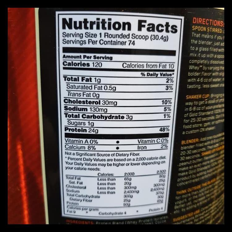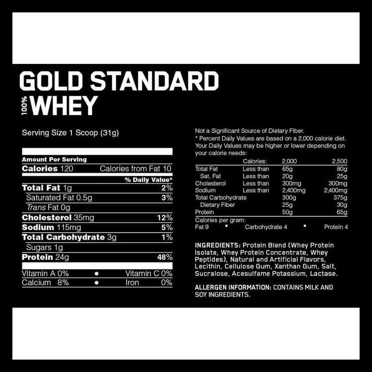 Gold Standard Whey Isolate Nutrition Facts
