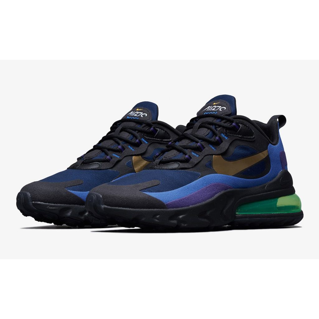 Nike Men Air Max 270 React Heavy Metal Black University Gold Deep Royal Blue