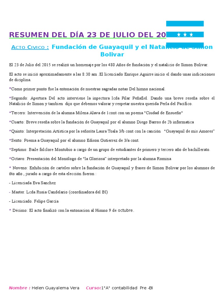 Resumen Del Dia 23 De Julio Del 2015 Fundacion De Guayaquil Y El