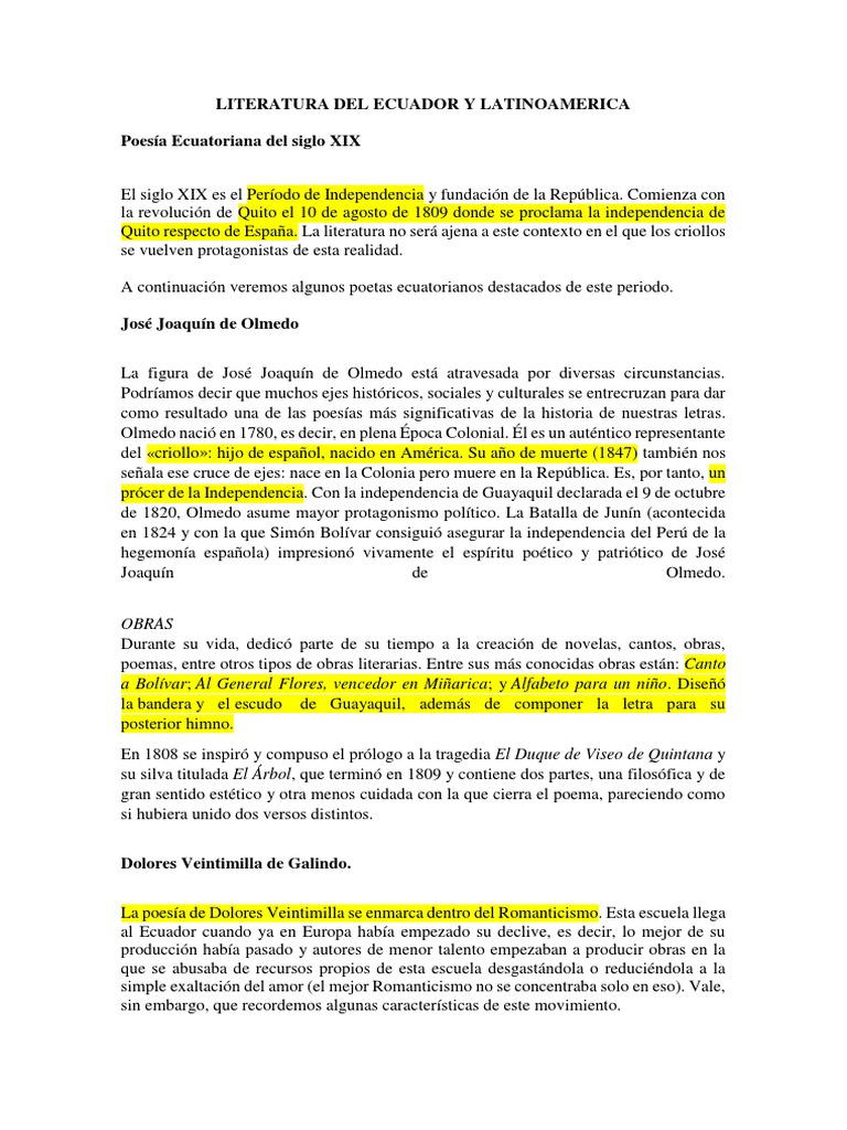 Poetas Ecuatorianos Del Siglo Xix Ecuador Poesia Prueba