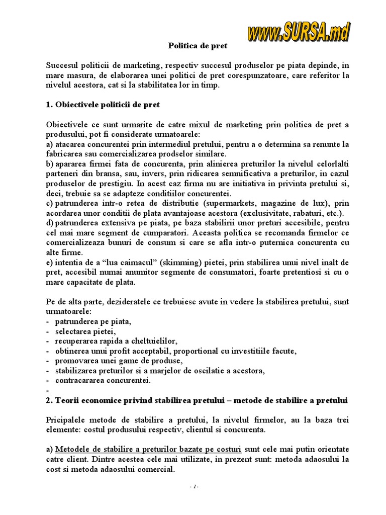 Cat anume suntem dispusi sa platim depinde de valoarea pe care o acordam afectiv iar uneori respectiva achizitie valoreaza mai mult decat in alte conditii. 1 pretul si factorii sai de influenta. Politica de preturi trebuie asociata si cu politica de distributie si politica promotionala pentru ca este necesar ca prin pret sa fie recompensate eforturile intreprinderii cu distributia si promovarea marfurilor activitati care la randul lor pot conduce la obtinerea unor preturi avantajoase. Politica de pret strategia de pret la societatea x strategiile si politicile de pret ale institutiilor financiar bancare analiza relatiei cost pret la nivel de produs s c.
