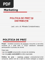 Alaturi de politica de produs pret si distributie politica de promovare asigura desfasurarea unei activitati de marketing moderne. Elementele componente ale pretului au ponderi. Elemente definitorii ale politicii de preţ strategia de piaţă strategii de preţ nivelul şi structura preţului produselor costurile intreprinderii si costurile pietei determinarea preturilor. Politica de pret preţul reprezintă cea mai mobilă componentă a mixului de marketing.