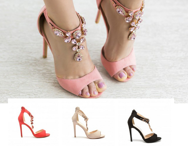 Sandale Elegante Cu Toc Accesorizate Cu Pietre Potrivite Pentru